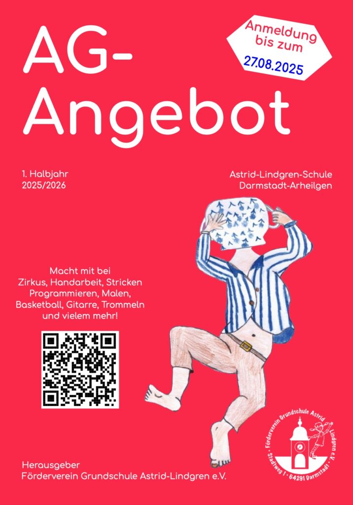 Bitte beachten Sie, dass die Anmeldung für eine AG bei Platzzusage zur Zahlungsverpflichtung des jeweiligen AG-Beitrages führt. Falls Ihr Kind aber doch nicht an der AG teilnehmen kann, geben Sie uns bitte möglichst frühzeitig Bescheid, damit gegebenenfalls ein Kind von der Warteliste nachrutschen kann.