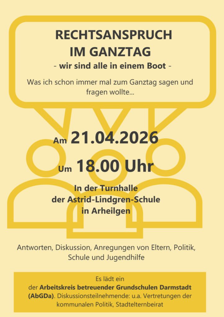 Die Anmeldung wird dann vollständig, wenn eine Anmeldung im Betreuungsportal der Stadt Darmstadt vorliegt und die schriftliche Bedarfsanmeldung, die als Grundlage für den Betreuungsvertrag dient, fristgerecht (27.03.2026) abgegeben wurden.